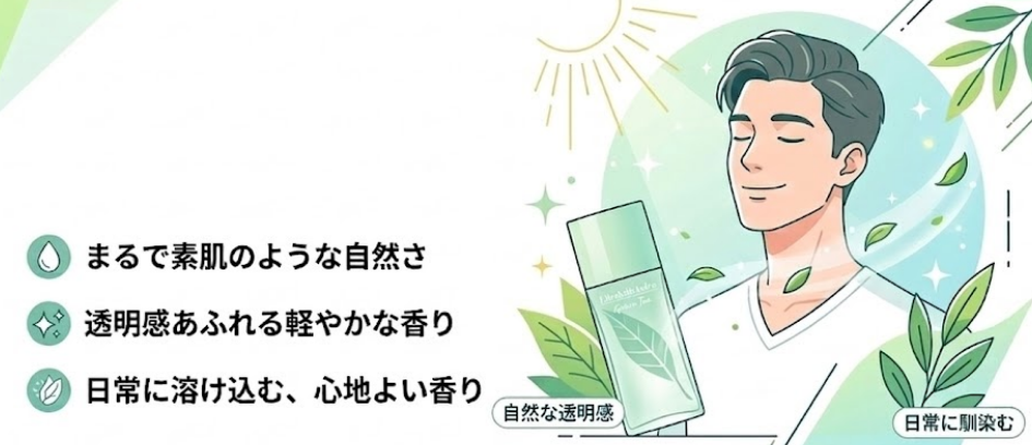 ナチュラルで清潔感のある香りなのが、エリザベスアーデン『グリーンティー』が男性でも使える理由といえます。
