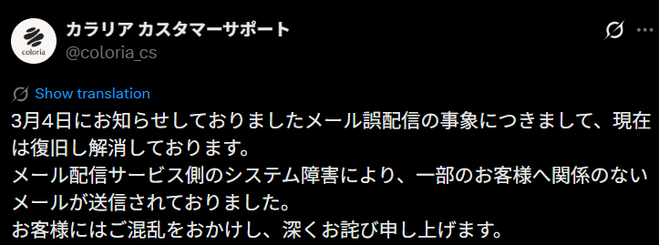 むしろ、カラリアはスムーズかつ早急に対応していました。