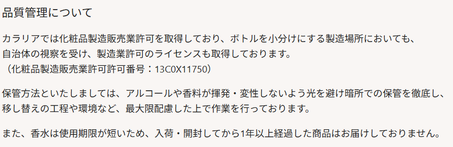 香水サブスク・量り売りサービスに必要な『化粧品製造業許可』も取得して運営されています。